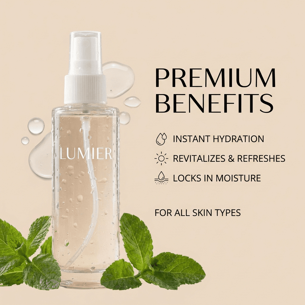A refreshing facial mist that instantly hydrates and revitalizes the skin, helping maintain moisture balance and a healthy, dewy glow throughout the day.